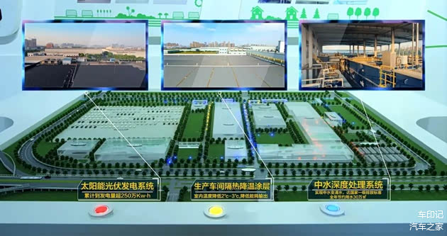 东风本田EHS事务局担当彭海介绍,这是光伏一体化车棚,利用员工停车棚、自行车棚、商务车棚等建筑为载体,建设600kWp的太阳能光伏并网发电站,供给园区照明及生产用电。三个工厂利用清洁能源总计实现年发电量55万kWh,减少二氧化碳排放550吨,减少森林砍伐量550万平方米。