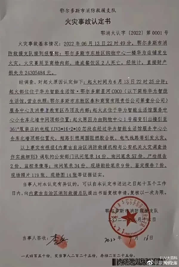 余承东多次公开提问界系列零自燃,见报的案例其实也有,最为知名的当属2022年发生在鄂尔多斯一购物中心的火灾