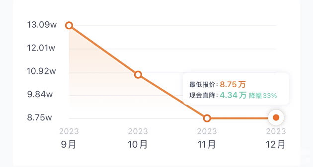 用户口碑方面,根据收集的数据显示,大众朗逸被赞扬其低油耗、宽敞的后备箱空间、美观的车头设计以及加速性能。然而,隔音效果的不足、起步动力不够以及内饰材质引发了一些用户的关注。而该车系保值率为57.89%,显示了其相对稳定的价值保持能力。在经销商报价趋势上,我们可以观察到价格从9月份的13.09万下降到12月的8.7万,呈现持续下滑的格局。这与市场需求、库存管理等多种因素相关,而实际用户提车价格可能会由于个人选择不同的配置、服务以及地区差异而有所变化。
