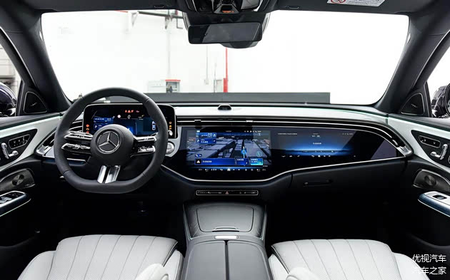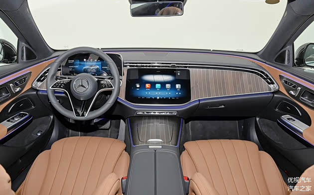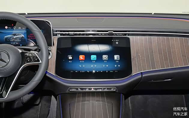 就先来看全新奔驰E级的内饰吧,这次的全新E级用上了奔驰家族最新的三联式屏幕,其中,位于驾驶员前方的是悬浮式仪表屏、中间是一块14.4英寸的中控屏,而副驾驶前方则有一块12.3英寸的娱乐屏。配合上奔驰最新的MBUX智能人机交互系统以及高通8295智能座舱芯片,智能化程度上确实提升了一个台阶。