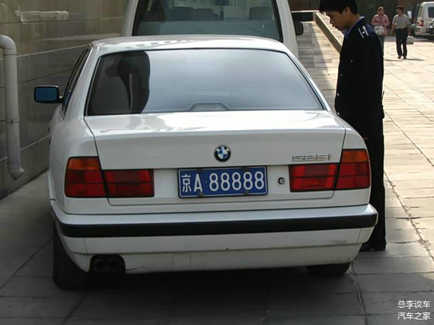 90年代,京A88888挂在第三代宝马5系上,第三代宝马525i产于1988年,于1995年正式停产,从尾灯来看,这辆525i属于第三代首批车型,30年前就开宝马5系,绝对是牛气冲天的存在,要知道,90年代初的宝马5系价值100多万人民币,在那个人均月收入百元的时代,百万豪车甚是少见。
