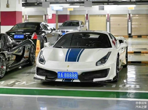 这辆法拉利常年停在北京银泰地下车库,以前被人PS传到网上,因为门当户对,所以很多网友都感觉这辆法拉利是真的。其实从地面反光部分也能看出来这不是京A88888,目前,京A88888在一辆白色的丰田卡罗拉上,这辆车出现在街头,回头率特别高,不过质疑的人也挺多。