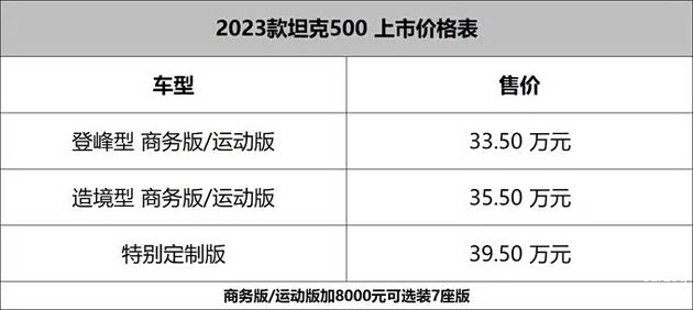 我们本次试驾的车型是售价35.5万元的2023款坦克500 3.0T运动版造镜型5座版车型,接下来主要围绕这版本车型说一下体验上的一些优缺点。