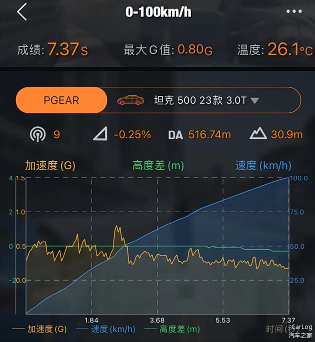 坦克500 Hi4-T自重2.8吨,这车重确实不轻,车辆允许3000rpm弹射起步,我们对车辆的百公里加速实测成绩为6.75秒,这动力对于坦克车主来说是够用的。