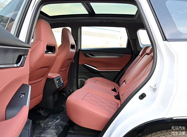内饰设计也非常上档次,环抱式的中控台、双联屏营造了很强的科技感;而在用料方面,大量软质包裹的应用则营造了到位的高级感,质感方面可以说是秒杀同级别的合资竞品。前排两张一体式的座椅标配菱形形状绗缝设计,并且它采用了高密度、高回弹发泡的用料,坐上来有一种零重力的感觉;再加上侧翼的设计,我整个人是被座椅完全包裹着的。对比同价位那些还在用织物座椅的竞品,它的舒适性可要强太多了。