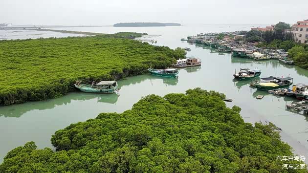 红树林是热带、亚热带海岸带海陆交错区生产能力最高的海洋生态系统之一,调风镇也拥有这么一块。通往红树林景区的公路是崭新的,显然是准备开发旅游了,只不过在游客接待方面目前几乎仍为“0”服务,好在无论是停车还是入园均免费。一望无际的林带铺向海滨,听村民说进林子步行大约可以走进去两三公里,我们快速换算一下游览的时长——耗不起!于是果断掉头继续南行。