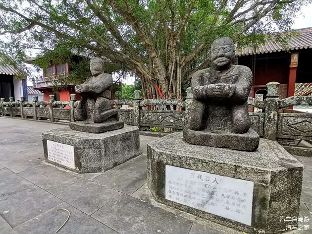 雷祖祠是为了纪念唐代雷州首任刺史陈文玉而建的,迄今已有1381年的历史了,也是岭南地区最大的祠堂之一,更是雷州最古老的文化遗迹点。祠内年代最久的文物要数四尊“跪坐”的五代石人了,它们分别代表着居于此的五位首领,但是我终究没能找到第五尊石人,如果你看过五代时期的《韩熙载夜宴图》这幅画,大概就可以知道到那个时期的达官贵人家里已经在使用胡床和高脚凳了,并不需要席地跪坐,那么这五位首领的姿势是在拜见刺史大人吗?