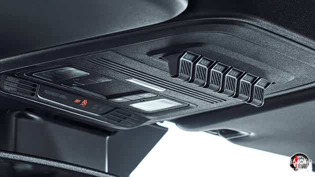 内饰部分的亮点在于,国产化的福特烈马Bronco相比平行进口版的内饰精致感有了很大的提升。中控台的软包材质、缝线工艺以及座椅上的压花等细节体现了国产车在做工方面的用心程度。大尺寸的仪表和中控大屏虽然尺寸尚未公布,但内置了骁龙8155的智能芯片,功能和流畅度有所保证。另外一处细节值得关注:车顶位置预留了6个如飞机驾驶舱中常见的开关,后期加装的一些功能可以与之关联,操控也更加便捷。