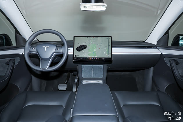 特斯拉Model Y的内饰风格与Model 3相同,非常简约,有一个15英寸的触摸屏和一个贯穿式的出风口组成。它还配备了沉浸式音效系统和全景玻璃车顶,让车内空间更宽敞明亮。驾驶员座椅可以调节高度,前围板也调低了,提高了驾驶员的视野。除了标准的黑色内饰外,特斯拉还提供了白色内饰的选项。