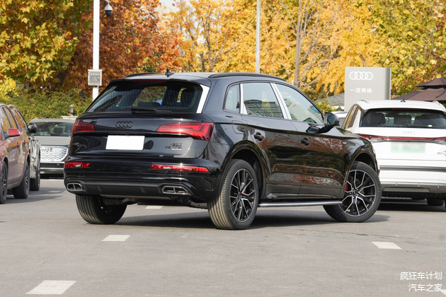 而在奥迪Q5L的车尾设计上,简洁而不失力量感。扰流板的装饰增加了尾部的动感,熏黑尾灯和双排气布局则更强调了车型的运动属性。整体来看,新款奥迪Q5L的外观设计令人印象深刻,不仅继承了奥迪的经典元素,还在细节上进行了精致的升级。