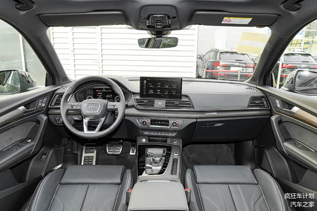 内饰方面,奥迪Q5L没有采用奥迪最新一代设计风格,稍显有些遗憾,根据不同车型,内饰的颜色搭配和装饰也是不同,相比竞争对手,没有什么优势,缺乏一些现代感。具体来看其搭配10.1英寸中控大屏、12.3英寸全液晶仪表。方向盘采用了真皮包裹,换挡机构为电子式。新车标配了全景天窗、电动后尾门、单色氛围灯(高配车型带30色氛围灯)、4G网络连接、倒车影像、定速巡航、可开启式全景天窗、LED前大灯、三区空调等配置。最高配两款车型带19扬声器B&O音响系统。