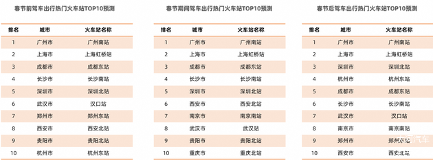 每逢春运,场站都会持续出现“大车流”。在火车站方面,预计广州南站、上海虹桥站在春节前、中、后三个阶段驾车热度都比较高。从省内情况来看,郑州东站在春节前夕和节后车流较为集中。