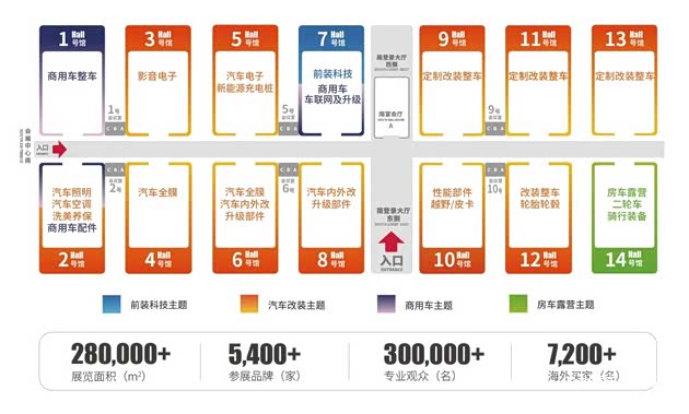 综合改装展区规模将达到18万㎡,吸引5400+综合改装品牌等10大改装品类,其中包括:内外改装、性能部件、轮胎轮毂、汽车电子、汽车影音、汽车照明、汽车全膜、洗美养保&汽车精品、新能源充电桩、汽车空调等。进一步深化汽车改装产业全链条发展,展示最新改装产品与最全改装方案,打造全球地标性汽车改装行业盛会。