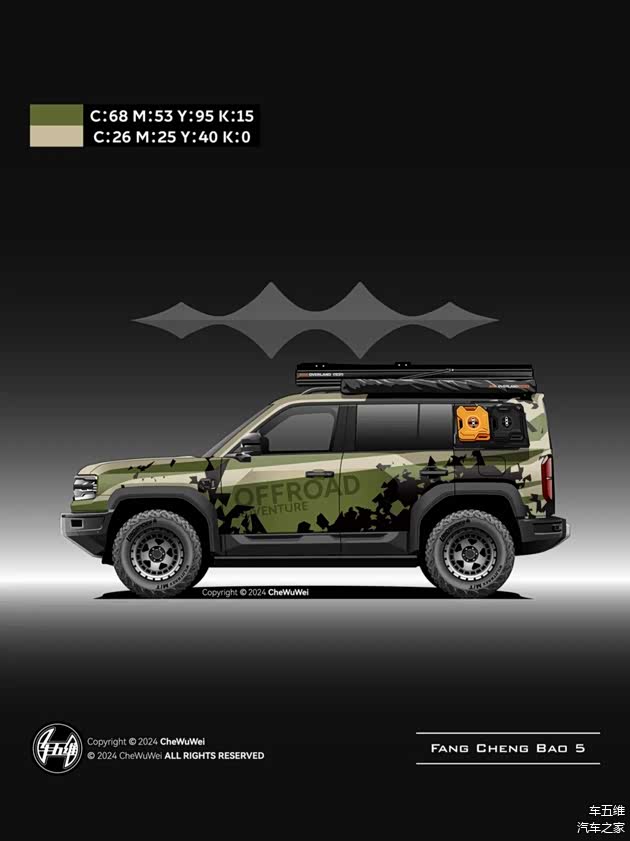 改装偏向穿越风,部分涂装配色参考了路虎卫士,福特Bronco这两款热门车型。