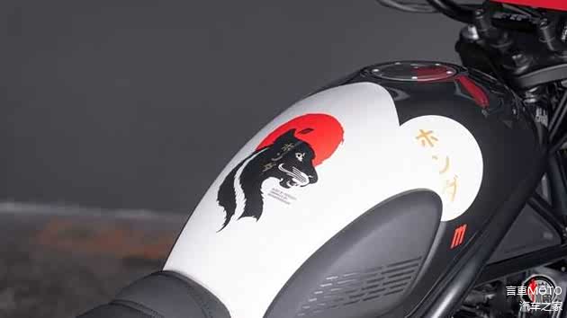 除了即插即用的套件,MOTOISM团队还邀请了艺术家Andy Werner为其量身定制了车身版画。红白黑三色构成的红日、黑豹以及狐狸尾造型,虽然看不懂版画所赋予的内涵,但一个德国艺术家设计出的图案,日里日气有些让人难以理解其寓意。