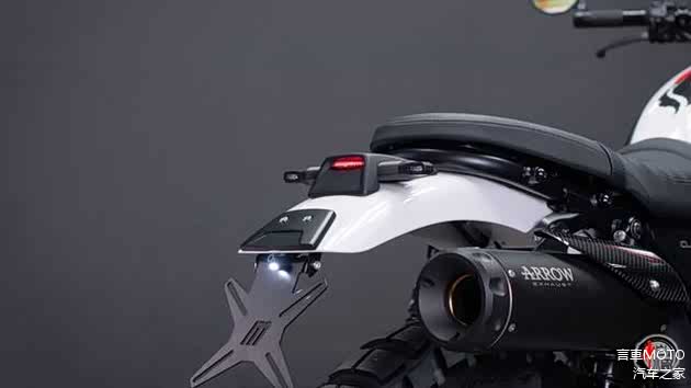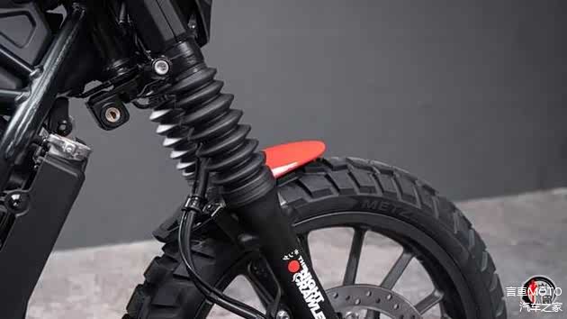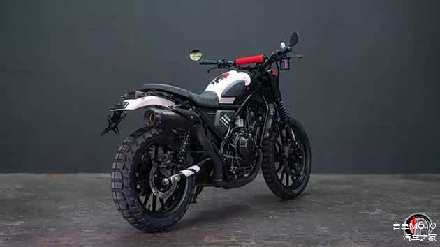 细节方面,红黑双拼色的小灯罩包裹着LED头灯,仪表并未做出调整,保留了原汁原味的设计,但提升了整体设计感。转向灯的设计比较有新意,被集成在减震器上段,无需拆下减震即可安装。尾部则通过一系列调整,取代了原本看似有些笨重的原厂装备,全新排气系统看起来也更加时髦。除了灯罩,在其他细节方面,还安装了一套复古风格的车把、横梁垫以及后视镜等部件。甚至还在车把上添加了一个杯架,很让人担心水杯会被无情地颠出去。