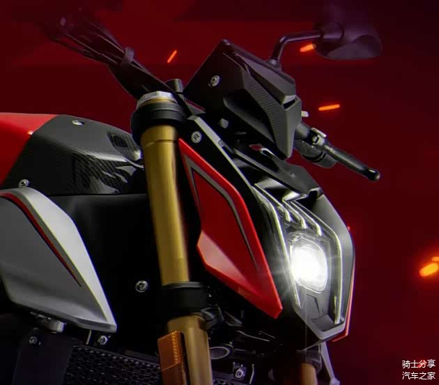 外观方面,作为街车该车的运动属性在整个外观的展现上非常突出,不管是一体式组合大灯,还是流线型线条,亦或者是前后落差较大的上翘后尾,都能呈现出它偏运动的设定,也能突出一定的家族化属性。尤其是金色减震器和时尚贴花靓丽色系之间形成了很好的共鸣,使得整车看着非常的激进。
