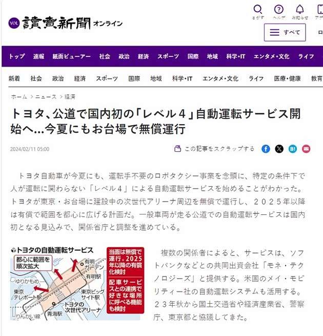 免费的自动驾驶服务的涵盖范围,会在白天在几个特定地点进行运行,乘客上下车的地点也将限制于停车场等指定的区域内,以确保万无一失的安全和项目运营能够盈利。等到2025年自动驾驶服务收费赢利后,服务会交给第三方运营商软银集团的移动服务合资企业莫奈技术来进行运营。