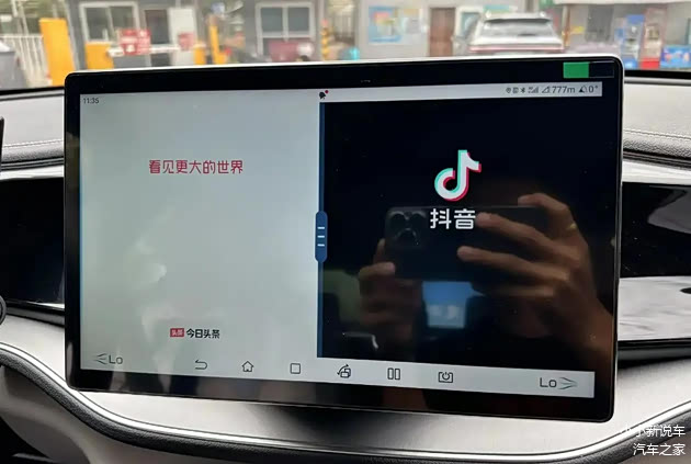 当然,为了照顾到主副驾驶的用车感受,比亚迪秦PLUS DM-i的中控屏是支持分屏功能的,简单来说,就是一块中控屏上能够分屏显示两个APP,只需要选择分屏功能就可以。