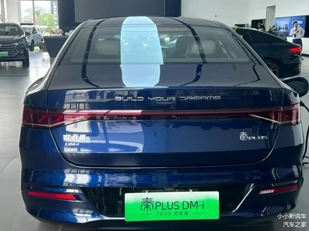 比亚迪秦PLUS DM-i的外观设计的大气新潮,进气格栅的尺寸宽大,黑色的中网上装饰了点阵式的镀铬饰条,前大灯组的造型饱满,进气口设计的较为修长。车身的造型舒展流畅,车窗的周边装饰了镀铬饰条,A柱的下方配备了示宽灯,小细节处理的比较到位,类似于星芒样式的轮毂提升了运动感。尾灯组采用的是贯穿式的设计,灯罩进行了熏黑的处理,点亮之后的视觉效果不错。