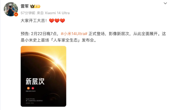 小米SU7有望2.22日公布售价? 2月18日,小米集团创始人、董事长兼CEO雷军发文宣布,小米14Ultra将于2月22日晚19点正式发布,同时雷军称,“这是小米史上首场「人车家全生态」发布会”。 有猜测认为,此次发布会上小米汽车或将开启盲定,也可能会公布汽车发布会的具体时间;另外也有网友表示,“小米汽车会不会提前公布售价?”那么你是否为之心动呢?