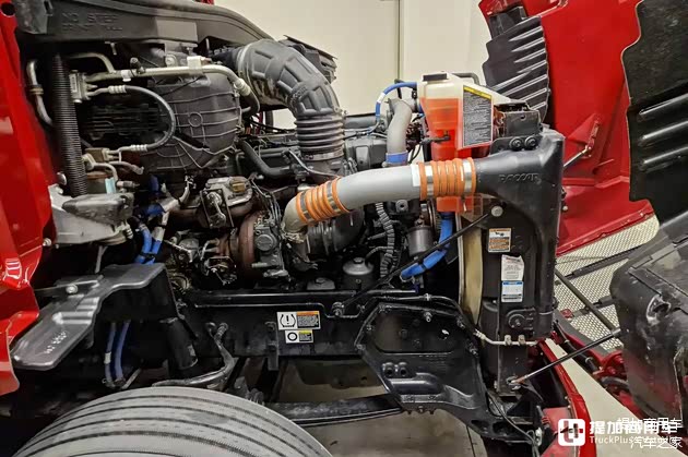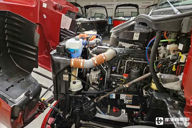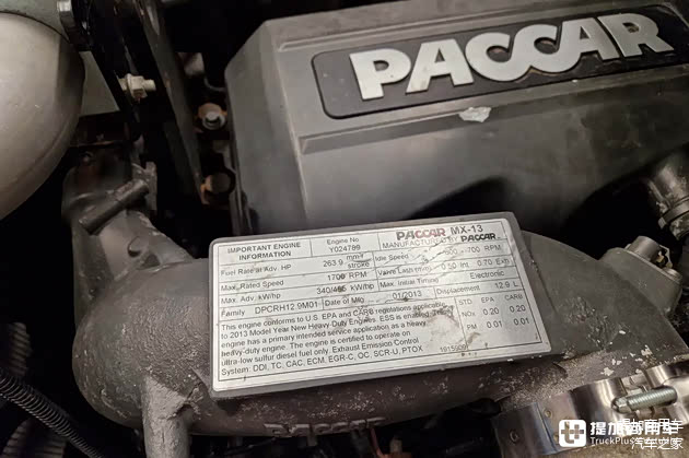 作为帕卡子公司车型,这台彼得比尔特579自然选择了帕卡MX-13直列六缸柴油发动机,排量12.9升,具备多种不同马力段可选。车辆搭载了455匹版本的发动机,其最大扭矩可达2508牛米。与之匹配的变速箱来自伊顿富勒,为一台不带同步器的手动10档变速箱,极具美式特色。