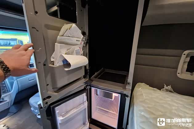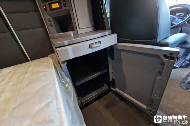 除了卧铺区域外,车辆还在驾驶室中部设计了多种功能区。从外观上看,这些功能区无非是普通的立柜,但内有乾坤。