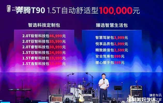 一汽奔腾T90在上市时只公布了基础款——1.5T自动舒适型,售价10万元,在此基础上,无论是发动机、变速箱、底盘还是智能安全套装等都可以定制,共计推出了包括6大智选科技定制包与5大臻选智慧生活包在内的11大配置升级包,充分满足消费者的多元化需求,将定制化落到实处。