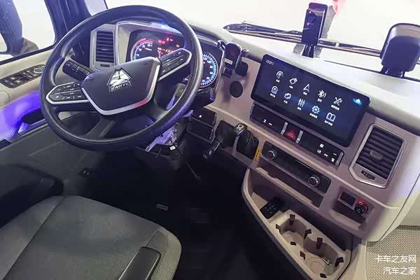 这款车采用12.3吋的悬浮式中控屏,能够显示各种车辆信息和导航信息,同时也支持语音控制、蓝牙连接、手机互联等功能,方便卡车司机进行操作和娱乐。