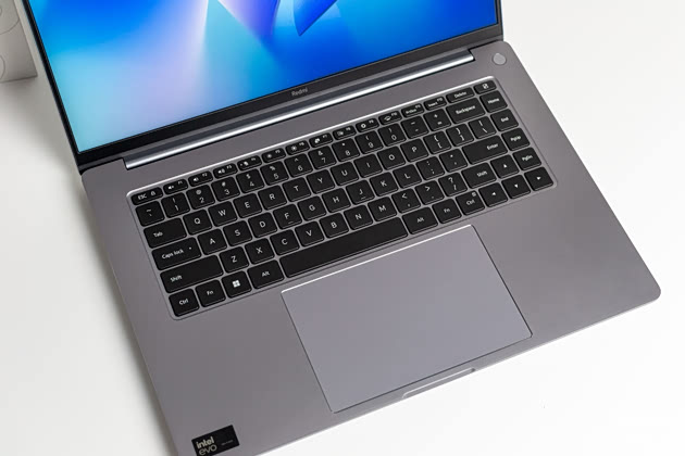 C面的设计同样非常简约,左下角贴有IntelEvo认证标志,说明Redmi Book Pro 16 2024获得了IntelEvo认证,综合使用体验有保障。右上角为独立于键盘的电源键,同时集成指纹识别。键盘的手感非常不错,键帽为内凹,贴合指腹;按键比较大,而且按压后回弹迅速跟手,打字比较爽快。触控板面积非常大,表面玻璃材质,触感非常顺滑细腻,滑动手感极佳,并且支持NFC。Redmi Book Pro 16 2024键盘和触控板的使用体验,属于目前轻薄本中比较优秀的一档。
