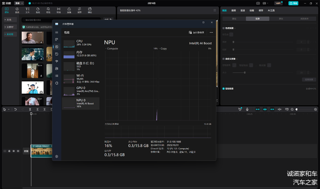 目前Windows自带的Windows录音室效果可以直接调用NPU,提供系统级视频通话方案,同时功耗更低;另外剪映的智能抠像功能也已经支持NPU,可以快速实现视频人物抠像。实测10秒左右的视频,NPU处理时间仅仅只有2秒左右,速度明显快于CPU。
