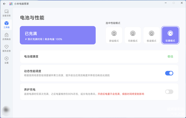 下面我们看一下Redmi Book Pro 16 2024的性能表现,这也是Redmi Book Pro 16 2024非常有实力的部分。除续航外,以下所有性能测试均在狂暴模式下进行,性能模式可在小米电脑管家——工具箱——电池与性能下调整。也可以通过Fn+K快速切换。不过狂暴模式比较特殊,仅支持手动切换,不支持快捷键。