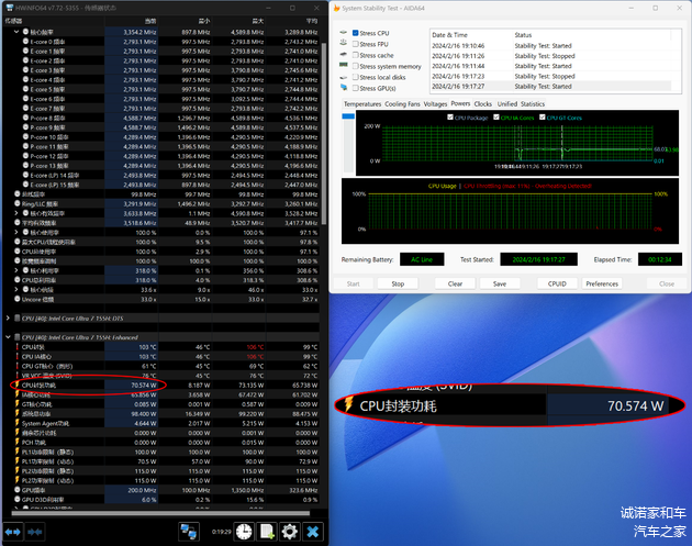 从跑分成绩可以看出,Redmi Book Pro 16 2024的性能释放是比较强的,那么到底多强?实测烤机12分钟,处理器的功耗已经来到了恐怖的70W,这个数字应该是我个人在轻薄本中见到的最大功耗了,非常夸张。当然,风扇的噪音也是比较吵的。