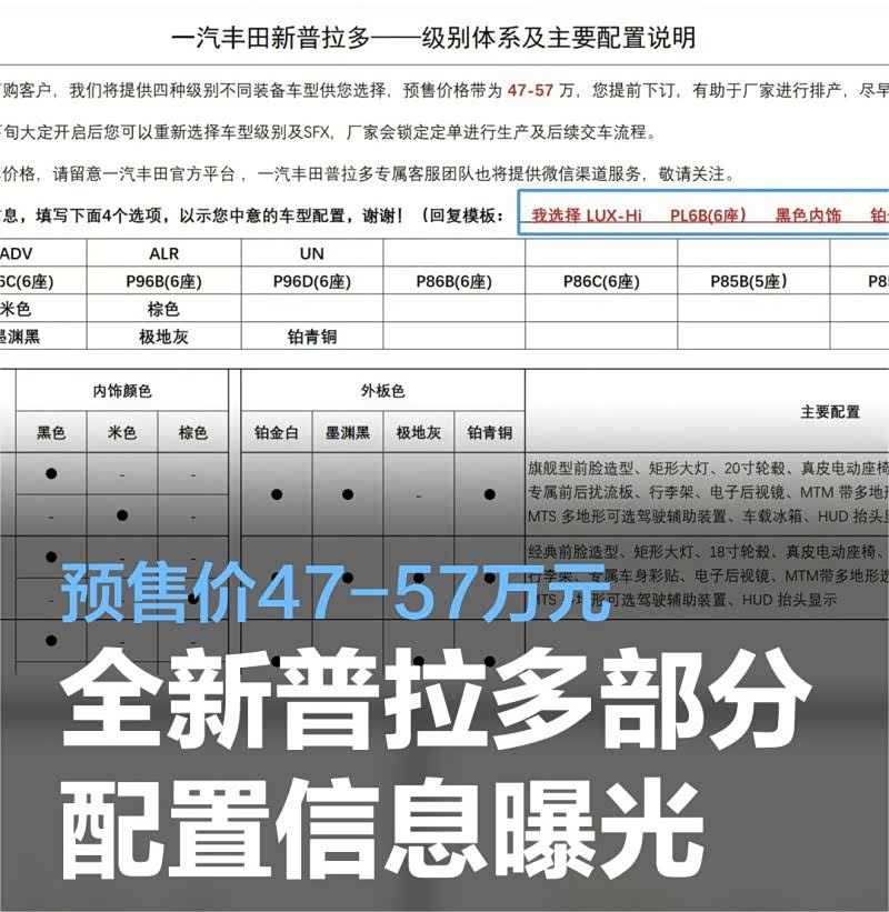 日前,2024年上半年上市的重磅越野车丰田普拉多LC250预售价格和部分配置信息曝光,预售价格47-57万元,基本上符合人们的预期,同时也为前段时间上市的雷克萨斯GX550降价留出了一定的空间,这就是价格卷起来的的结果,消费者得到实惠!