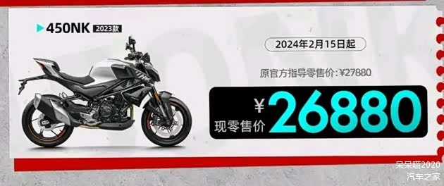 春风动力官方宣布了旗下春风2023款450NK降价1000元,最新售价为26880元。此外,购买2023款450SR S单摇臂版还将获得1000元油卡,购买2023款450CL-C将获得1000元油卡和原厂护杠、前风挡、后靠背。