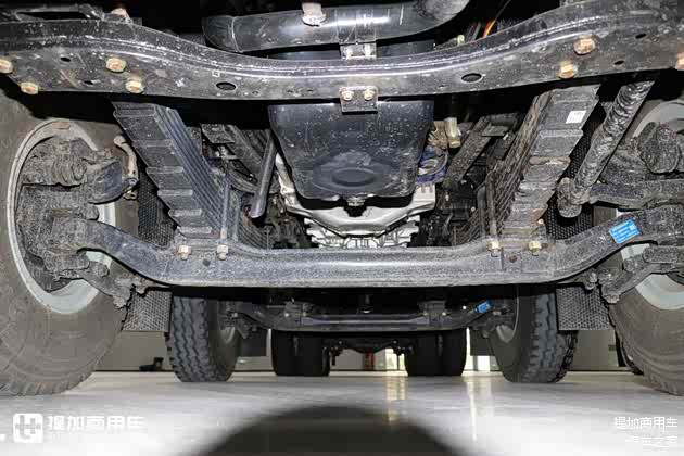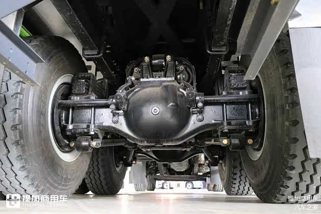 后桥为汉德16吨轮边减速桥,优点则是离地间隙高,承载能力强,这款桥在自卸车当中的应用也较为普遍。