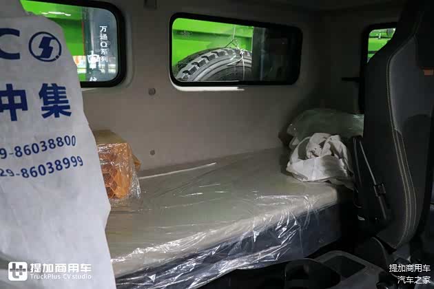 后面的卧铺是工程车上常见的短卧铺设计,满足日常休息的需求。