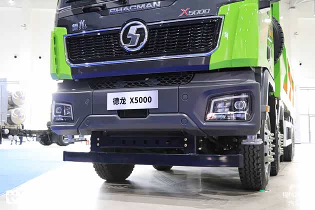 在后悬方面陕汽德龙X5000自卸车也应用了一些主流的配置和新技术,轮胎是12.00R20的钢丝胎,搭配12片钢板弹簧和4骑马卡设计。后桥平衡轴部分应用全新的重载型免维护平衡轴,减少维护保养频率,且整车底盘做有防水处理,可靠性更高。