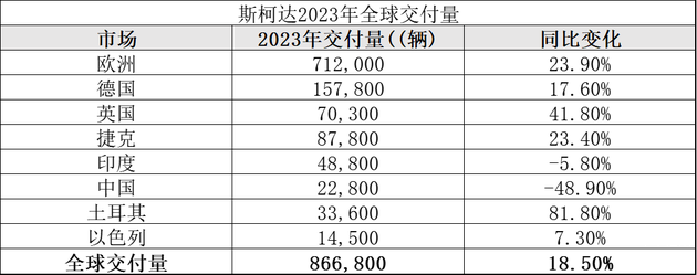 在2022-2023年期间,斯柯达这两年在印度的交付量总和超过了10万辆,2023年在印度市场交付了48800辆,同比降了5.8%,而在中国市场的交付量是22800辆,同比下降48.9%,2023年斯柯达在印度的交付量是中国的两倍有余,所以印度已是斯柯达全球第三大市场。但是从数据来看,斯柯达在中国市场交出的成绩明显下降,主要还是因为中国市场激烈的竞争,以及斯柯达是大众换标车的刻板印象吧,毕竟在国内,斯柯达的知名度远不如大众高,虽然使用同平台和技术,但售价也没便宜很多,自然更多人选择知名度更高的大众。