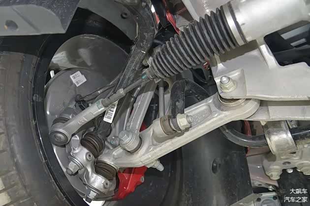 前悬架为双球双叉臂结构,能有效的提升操控性能,结构和智己L7一模一样,但材质有所缩水,有一根连杆由铝合金换成了铸铁材质,其余连杆都还是铝合金材质。