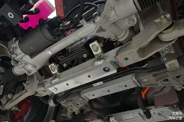 这辆车是后驱单电机版本,但前副车架为前电机预留了相当大的空间。