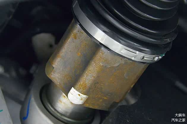 这辆刚买不久的新车,半轴内侧球笼罩外壳已经出现了生锈现象。