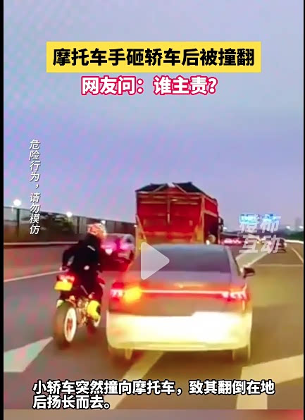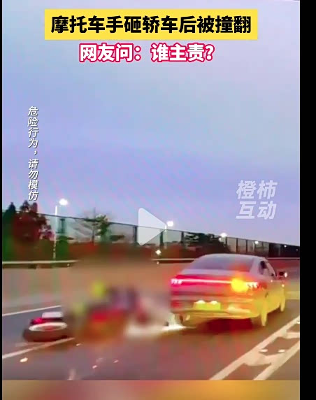 【网络流传一比亚迪在高架桥上将一摩托车撞翻并扬长而去,谁的责任?】