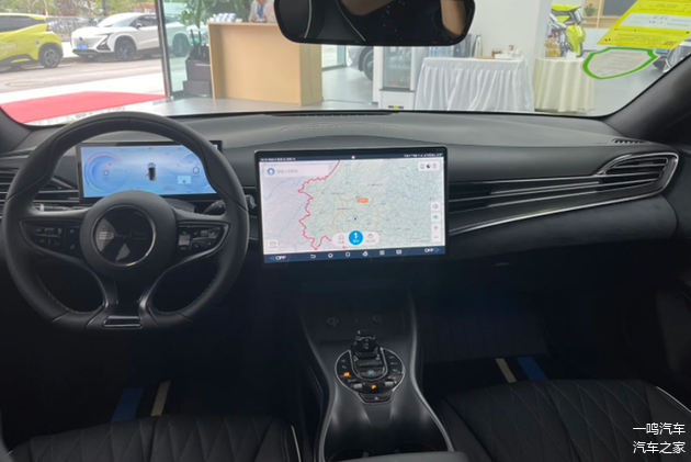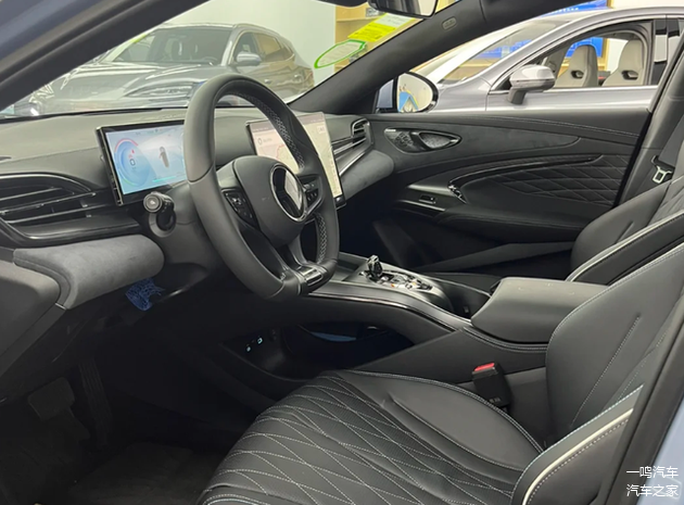 内饰方面,中控台细节处理精致,在用料上采用皮质材质和翻毛皮材质包裹,中间搭载一款大尺寸液晶屏,内置DiLink车机系统,操作流畅度不错,还可以在应用市场下载各类影音娱乐APP,可玩性很高。三幅式方向盘造型比较激进,上方采用高亮的饰板点缀,操控区的造型有点像“小蛮腰”,还配备小巧的水晶换挡机构。
