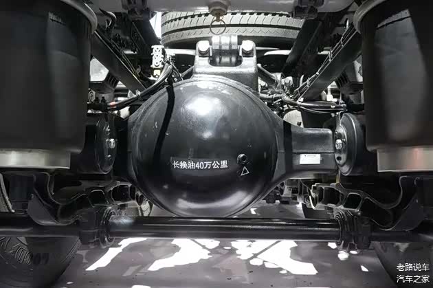 这辆解放鹰途头等舱车型配置比较高,中后桥选用的是美驰都力特156系列驱动桥,可能有些朋友还没接触过这种车桥。美驰MD11156驱动桥额定轴荷11吨,主减速比2.85,换油里程长达40万公里,比我们此前介绍过的一些产品都要长,是一款非常实用的配置。