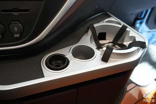 中控台下方不光是水杯架,这里也是可以进行简餐制作的MINI厨房。打开左右的盖板可以存放少量餐具,还可以存放小电饭煲,具体可以根据车上人员的需要来布置。