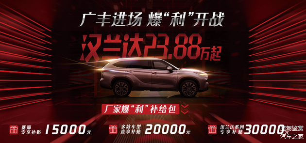 广汽丰田汉兰达的这次爆“利”补给包活动,无疑是给所有犹豫中的朋友们一个明确的信号:现在,就是最佳的购车时机!如果你还在犹豫要不要换车,或者在选什么车而犹豫不决,不妨考虑一下汉兰达。机会总是留给有准备的人!省油又有这么大的优惠,趁着优惠还在,无论是去4S店亲自体验一番,还是直接下定决心购买,赶紧行动吧!