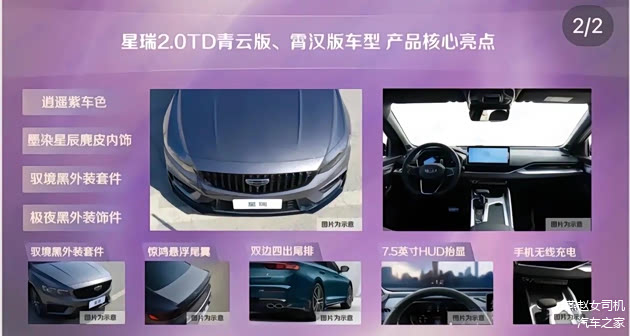 从实车图来看,新车造型与现款车型基本保持一致,不过将新增“逍遥紫”配色,官方给出的示意为“逍通驰骋,浩然自在,紫气东来”。另外,2.0TD 青云版/霄汉版还将采用熏黑垂瀑前格栅、熏黑双透镜LED能量律动前大灯,加之驭境黑外装套件,战斗感呼之欲出。