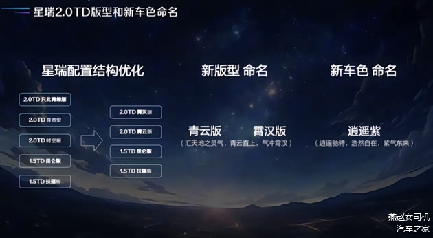 今年1-2月,吉利 星瑞累计销量超3万辆,不可谓不火爆,而为了实现再进一步,24款星瑞应运而生。目前,新车已到店,据经销商处透露,24款星瑞将于3月26日上市,或推出4款车型,包括1.5TD 扶摇版/昆仑版,新增2.0TD 青云版/霄汉版,分别对应现款的尊贵型和只此青绿版,售价分别降低至12.97万元和13.87万元,并针对配置进行升级,下面,我们就来了解一下。