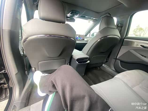 然后就是空间方面了,岚图追光PHEV(旗舰版)的车身尺寸为5088x1970x1505mm,轴距达到了3000mm,数据上比起同级别的奥迪A6L还要优秀。当然,这也带来了舒适的乘坐空间,尤其是后排,翘二郎腿都不成问题。而且还加入了老板座椅,配有腿托,还能一键收起副驾座椅,这也让岚图追光PHEV多了一丝商务属性。但在实测中,我们发现后排中间座椅的靠背由于可以可以放到作为后排中央扶手使用,就显得比较“凸出”。一旦后排满座,中间位置的乘客的乘坐舒适性会大打折扣。整体来说,岚图追光PHEV内饰以及空间方面,在同级别车型中,还是比较有特色,且有着一定竞争力的。